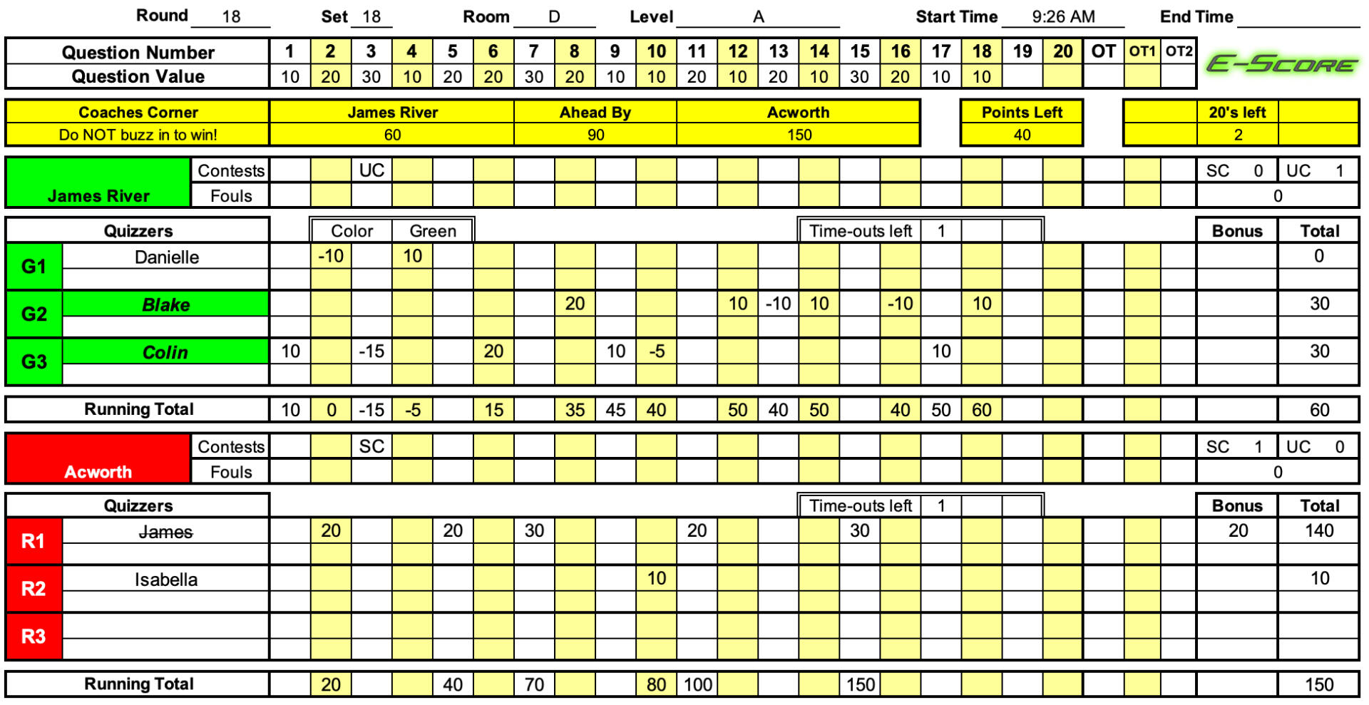 Simplified Scorekeeping for Teen Bible Quiz Teams